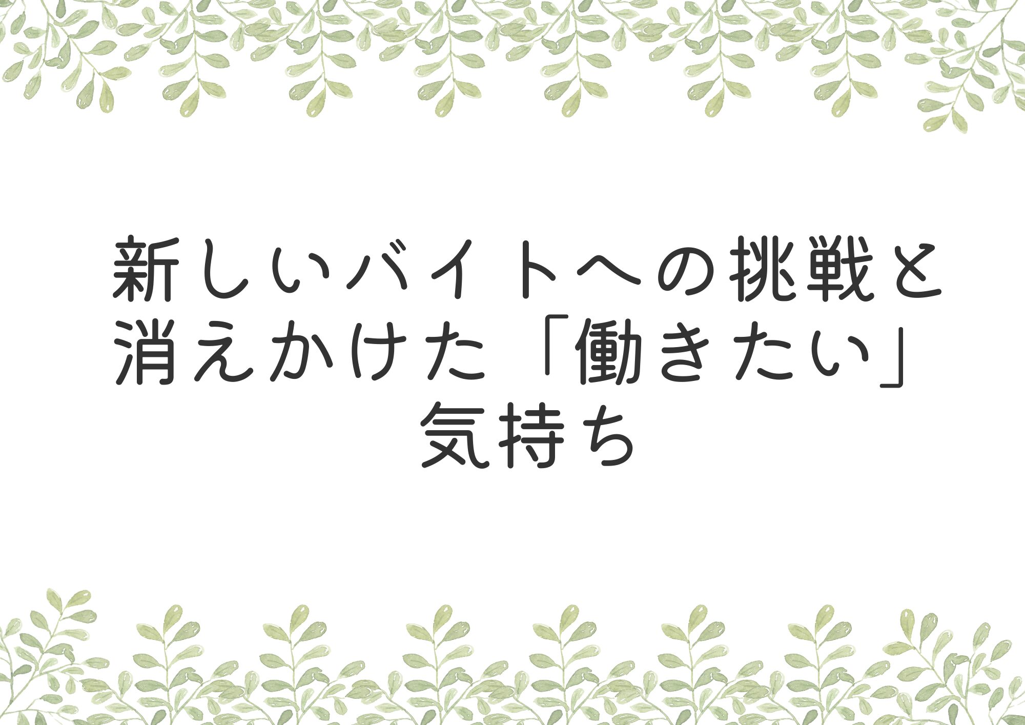 そして今、苦手だった接客にも挑戦してみようと思えるまでに回復しました。無職期間にピリオドを打ち、また働き出したのは「収入がないと厳しい」という現実的な理由が大きいですが、それでもまた前を向ける自分がいることに、少しほっとしています。